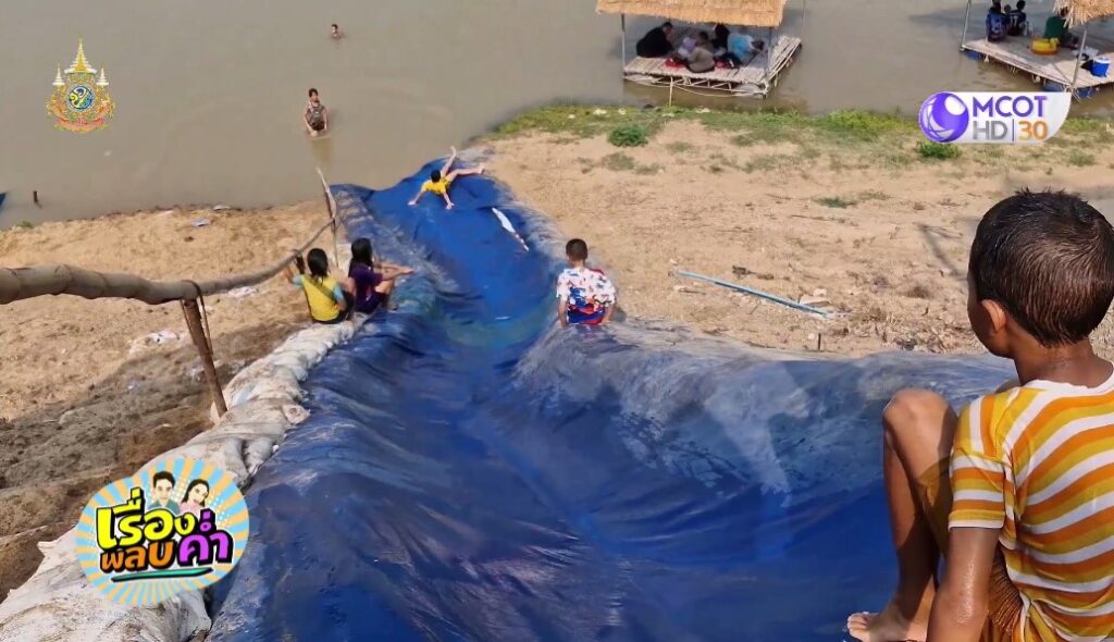 ชัยนาท 27 มี.ค. – อากาศร้อน คนแห่เล่นน้ำหาดทรายสะแกงาม กลางแม่น้ำเจ้าพระยา หน้าวัดสะแก จ.ชัยนาท แหล่งท่องเที่ยวยอดฮิต เล่นสไลเดอร์แบบบ้านๆ สนุกสนาน มีรายได้เข้าวัด