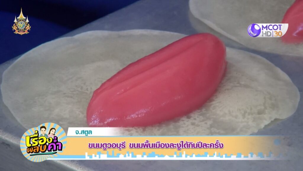 สตูล 27 มี.ค. – ขนมดูวอบุรี หรือขนมสองเมือง ชาวบ้านจะเรียกว่า ขนมไส้แดง เป็นขนมพื้นเมืองของ ต.กำแพง อ.ละงู จ.สตูล มีให้กินไม่บ่อยนัก เพราะทำปีละครั้ง เฉพาะช่วงเดือนรอมฎอน หรือเดือนถือศีลอดเท่านั้น ยอดขายสุดปัง วันละ 1,500-2,000 กล่องต่อวัน
