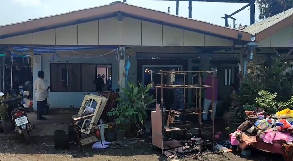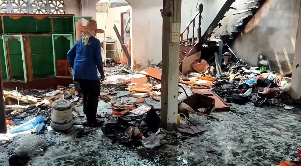 น.ส.ณัชยาภา อายุ 17 ปี ลูกสาวเจ้าของบ้าน เล่าว่า ช่วงเวลาประมาณตี 3 นอนอยู่ชั้นบน เกิดฝนฟ้าคะนองอย่างหนัก ลมกระโชกแรง จากนั้นได้ยินเสียงฟ้าผ่าดังสนั่น คิดว่าน่าจะผ่าที่อื่น แต่สักพักฟ้าผ่าลงมาอีกเป็นครั้งที่สอง มีควันลอยเข้ามาในห้องนอนที่ตนนอนอยู่ จึงรีบออกไปดูพบว่าไฟกำลังไหม้อย่างรุนแรง จึงรีบวิ่งไปปลุกพ่อและคนอื่นๆ ที่นอนอยู่ชั้นล่าง ให้ออกจากบ้านได้ทัน แต่ไฟได้ลุกไหม้จนบ้านเสียหายเกือบทั้งหลัง โชคดีที่รอดตายมาได้อย่างหวุดหวิด
