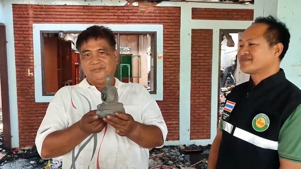 นายสำเริง อายุ 60 ปี เจ้าของบ้าน เล่าว่า ช่วงเกิดเหตุนอนอยู่ชั้นล่างกับภรรยา ในช่วงที่ฝนฟ้าคะนองและมีฟ้าผ่า ตอนลูกสาวมาเรียกลุกออกมาดูพบว่าไฟกำลังลุกไหม้ ด้วยความตกใจจึงรีบวิ่งออกมาจากบ้าน ในส่วนความเสียหายภายในตัวบ้านไม่สามารถประเมินค่าได้ เนื่องจากมีพระเครื่องที่สะสมมานานกว่า 20 ปี จำนวนมาก มูลค่านับแสนบาท ทรัพย์สินส่วนใหญ่ภายในบ้านถูกไฟไหม้ได้รับความเสียหาย คงเหลือเพียงแค่หลวงพ่อทบ 2 องค์ เกจิชื่อดัง จ.เพชรบูรณ์ เชื่อว่าบารมีหลวงพ่อช่วยไว้