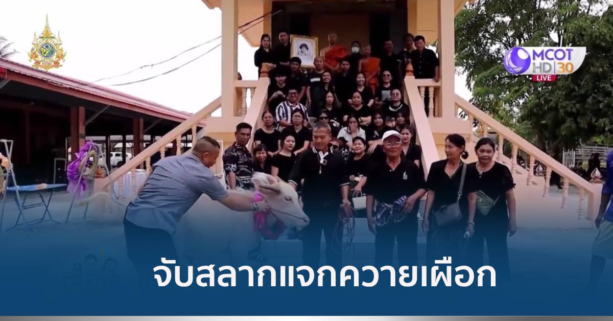 ทั้งชาวบ้านและพระเณรต่างก็เข้ามาจับสลากกัน แต่ก็ยังไม่มีใครได้รางวัลสักที ญาติจึงใช้วิธีโปรยสลากให้คนที่มาร่วมงานได้วิ่งเก็บ สุดท้ายรางวัลควายเผือกก็แตก ผู้โชคดีที่จับสลากได้ คือ ลุงชูศักดิ์ อายุ 58 ปี ท่ามกลางเสียงเฮลั่น ทั้งคนจับรางวัลได้และชาวบ้านที่ร่วมยินดี
