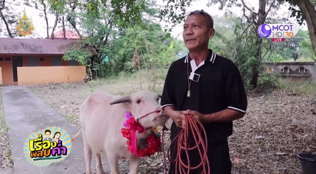 ส่วนผู้โชคดีที่ได้รับควายเผือก บอกว่าจะเอาควายไปเลี้ยงเอง ตั้งชื่อ มาลัยทอง จะเลี้ยงไว้กว่าจะตายจากกัน ไม่ขายแน่นอน. – สำนักข่าวไทย