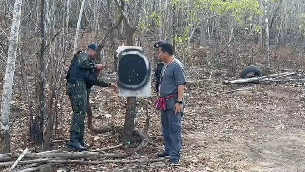 เมื่อเจ้าหน้าที่บุกไปที่เกิดเหตุสำนักสงฆ์ ในตำบลเหล่าใหญ่ ซึ่งเป็นที่พักของพระผู้ก่อเหตุ ซึ่งได้ถูกออกหมายจับแล้วตั้งแต่วันที่ 19 มีนาคมที่ผ่านมา หลังถูกผู้เสียหายแจ้งความในข้อหาข่มขืนใจผู้อื่นให้กระทำการใด โดยทำให้กลัวว่าจะเกิดอันตรายต่อชีวิต ร่างกาย เสรีภาพโดยมีอาวุธ ตามหมายจับศาลจังหวัดกาฬสินธุ์ แต่เมื่อไปถึงที่เกิดเหตุไม่พบตัวพระรูปดังกล่าว จากการตรวจสอบบริเวณด้านหลังสำนักสงฆ์ พบร่องรอยการใช้แผ่นกระเบื้องเป็นเป้าในการยิงปืน พบแมกกาซีนและปลอกกระสุนอีกจำนวนหนึ่ง เจ้าหน้าที่จึงเก็บทั้งหมดไว้เป็นหลักฐาน