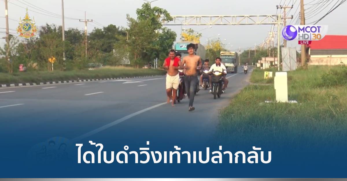 นครราชสีมา 2 เม.ย. – หนุ่มโคราชดีใจจับได้ใบดำ วิ่งกลับบ้านเท้าเปล่า ท่ามกลางแดดร้อนจัด ระยะทางกว่า 7 กม. เพื่อนแห่ยินดี เผยใส่เสื้อแดงเอาเคล็ด