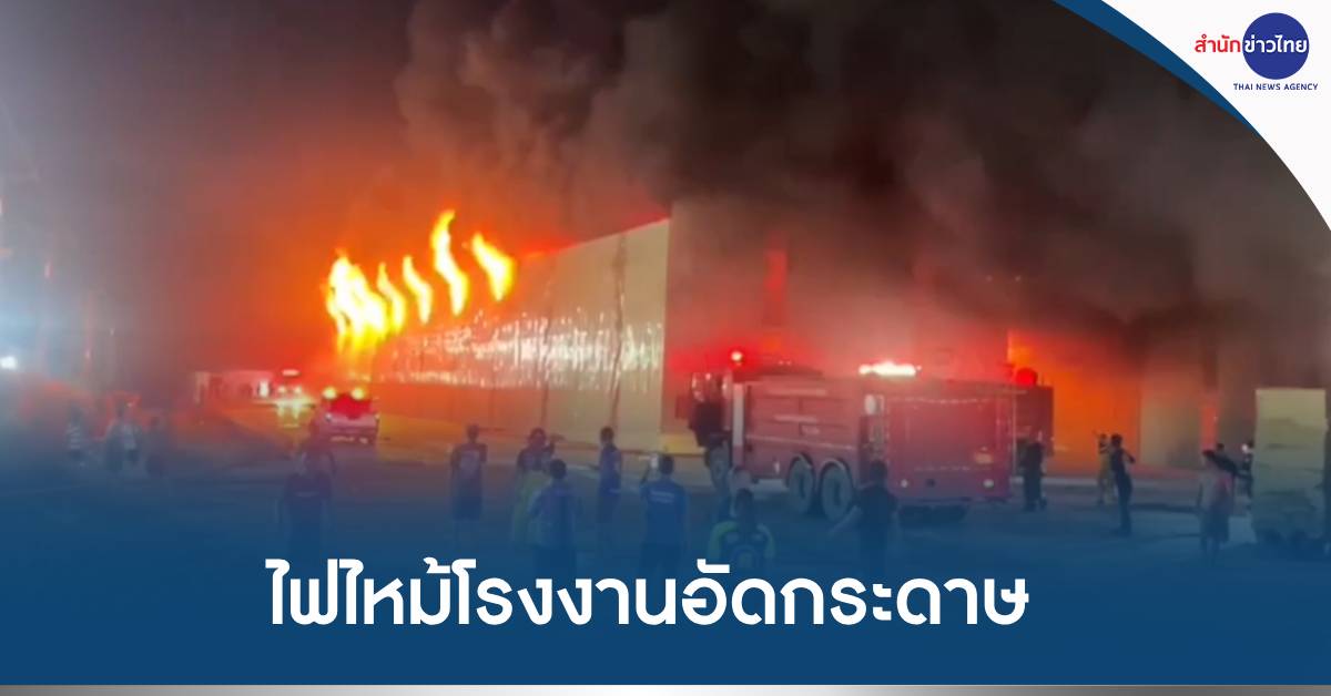 ชลบุรี 6 เม.ย.-ไฟไหม้โรงงานอัดกระดาษรอการรีไซเคิล อ.บ้านบึง จ.ชลบุรี ไฟลุกโหมอย่างรวดเร็ววอดเสียหายทั้งหมดไม่ต่ำกว่า 10 ล้านบาท ไม่มีคนเจ็บหรือเสียชีวิต