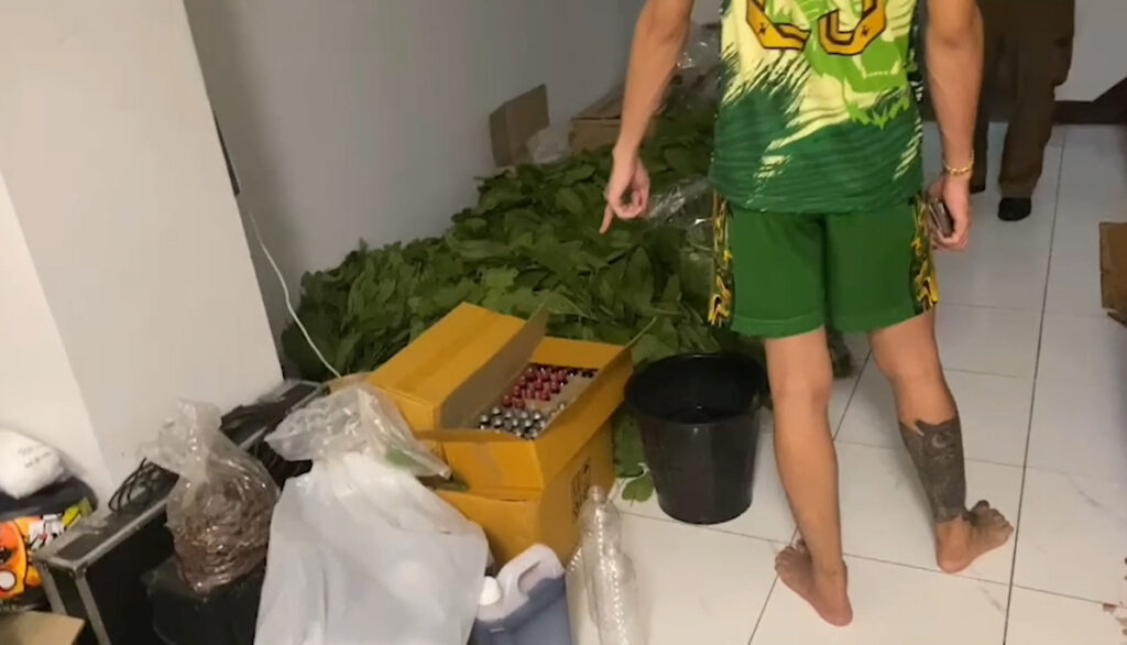 ทางด้าน พ.ต.อ.พฤฒ จำรูญศาสน์ ผกก.สภ.บางบัวทอง กล่าวว่า ทางเจ้าหน้าที่ตำรวจ สภ.บางบัวทอง ได้รับแจ้งจากพลเมืองดีว่ามีการลักลอบผลิตน้ำกระท่อมจึงสนธิกำลังลงพื้นที่ตรวจสอบ เบื้องต้นสามารถจับผู้ต้องหาได้หนึ่งคน ส่วนของกลางก็มีตั้งแต่ เครื่องบดใบ ขวดเปล่า ยาแก้ไอ เตาแก๊ส ใบกระท่อมสด น้ำกระท่อมบรรจุพร้อมดื่ม ส่วนเรื่องของจำนวนนั้นตอนนี้ทางเจ้าหน้าที่กำลังตรวจสอบ โดยผู้ต้องหารับสารภาพว่าทำมาประมาณ 2-3 เดือนแล้ว และขายให้ลูกค้าโซนบางบัวทอง เบื้องต้นได้แจ้งข้อหาผลิตและจำหน่ายน้ำกระท่อม และมียาควบคุมไว้ในความครอบครอง นำตัวผู้ต้องหาส่งพนักงานสอบสวนดำเนินคดีตามกฏหมายต่อไป.-สำนักข่าวไทย