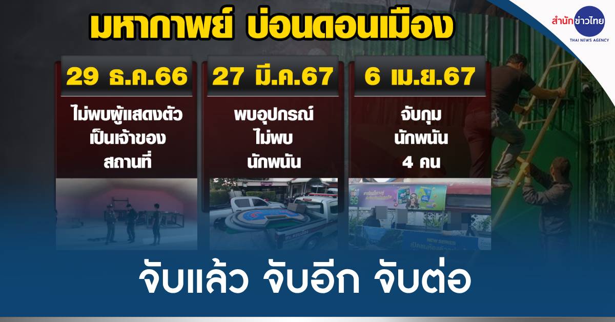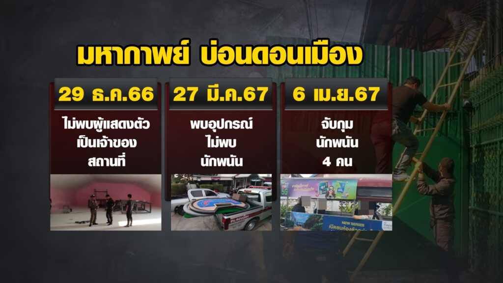 ดอนเมือง 7 เม.ย.-มหากาพย์ บ่อนดอนเมือง จับยังไงก็ไม่หยุด ผกก.ยันเปิดอีกจับอีกจนกว่าจะหยุด จับครั้งนี้อยู่ระหว่างปรับปรุงใหญ่กว่าเดิม ทางเข้ายากมาก ไม่มีใครแสดงตัวเป็นเจ้าของ