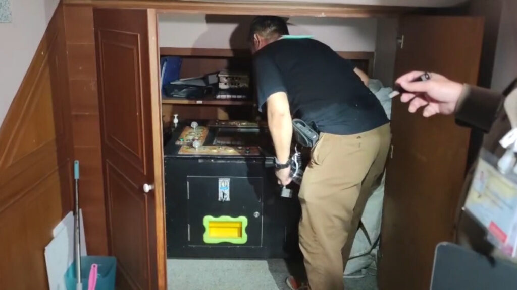 จากนั้นเจ้าหน้าที่ได้ทำการตรวจค้นต่อพบห้องลับบริเวณห้องน้ำด้านหลังอาคารทะลุไปชั้น 1 ของห้องพักที่เลิกกิจการไปแล้ว และพบตู้ยิงปลาไฟฟ้าปิดด้วยผ้า จำนวน 1 ตู้ เจ้าหน้าที่จึงทำการตรวจยึดเพิ่มเติม จากการสอบถามนักพนันเบื้องต้น ให้การยอมรับว่าเข้ามาเล่นพนันจริงแต่เล่นแค่ดรัมมี่ ไม่ทราบว่าตรงนี้เป็นบ่อน ซึ่งเจ้าหน้าที่อยู่ระหว่างการสอบสวน