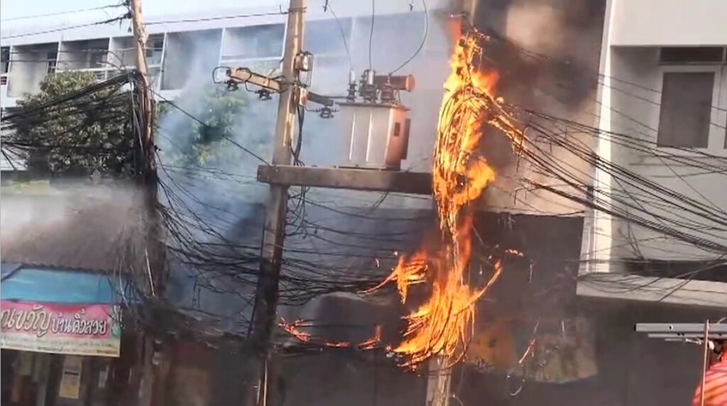สระบุรี 8 เม.ย. – หม้อแปลงไฟฟ้าระเบิดเสียงดังสนั่นกลางเมืองสระบุรี ไฟลุกท่วม รถเก๋งเสียหาย 1 คัน ด้านเจ้าของร้านสักคิ้วใกล้จุดเกิดเหตุเผยนาทีระทึก