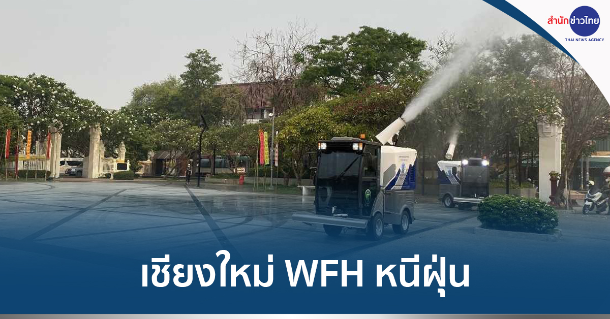 เชียงใหม่ 9 เม.ย. – เชียงใหม่ประกาศเวิร์กฟอร์มโฮมหนีฝุ่นวันแรก พร้อมบิ๊กคลีนนิ่งทำความสะอาดถนนเพิ่มความชุ่มชื้นลดฝุ่น