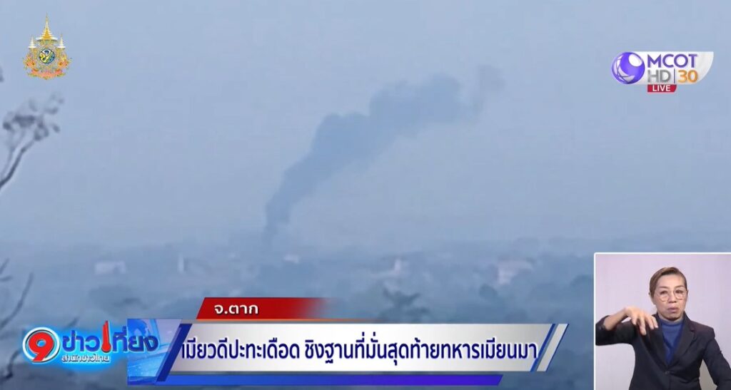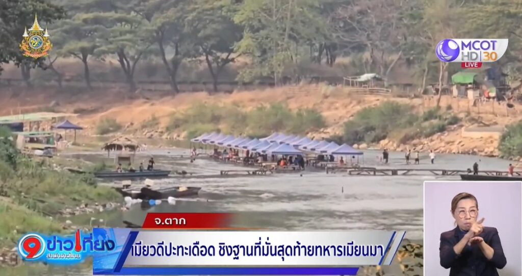 ตาก 10 เม.ย. – กองกำลังฝ่ายต่อต้านบุกโจมตีค่ายทหารเมียนมา ฐานที่มั่นสุดท้ายในเมืองเมียวดี จนเกิดการยิงปะทะอย่างหนักหลายชั่วโมง เสียงระเบิดดังสนั่นชายแดน ชาวเมียนมาเริ่มแห่หนีภัยสู้รบผ่านด่านพรมแดนแม่สอด จ.ตาก