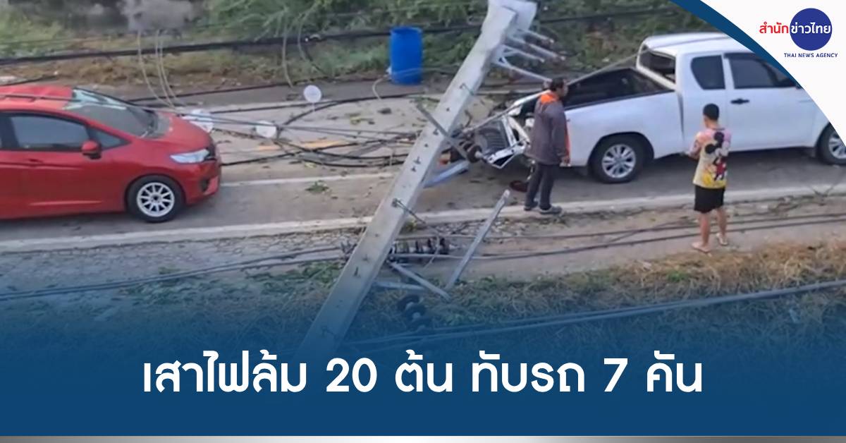 ลำปาง 13 เม.ย.-พายุฝนถล่มลำปาง เสาไฟฟ้าแรงสูงล้มกว่า 20 ต้น ทับรถ 7 คัน รถยังไม่สามารถออกได้ เจ้าหน้าที่ระดมกำลังเร่งเคลียร์เพื่อสะดวกในการจารจรช่วงสงกรานต์ คาดใช้เวลา 5 วัน พร้อมตั้งศูนย์บัญชาการแก้ปัญหาที่ไทวัสดุแล้ว