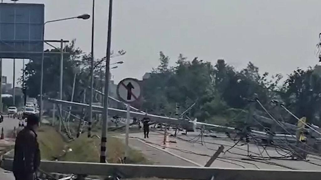 ขณะที่ทางเจ้าหน้าที่การไฟฟ้าเข้ามาเคลียร์ความเสียหายของเสาไฟฟ้าขนาดใหญ่ ที่ล้มระเนระนาดเป็นระยะทางประมาณครึ่งกิโลเมตร ปากทางเข้าห้าง ขณะเดียวกันยังมีแผ่นเมทัลชีท จำนวนมากปลิวไปติดสายไฟและเสาไฟฟ้าแรงสูงบริเวณโชว์รูมขายรถยนต์ ใกล้กับบริเวณดังกล่าวอีกด้วย ร้านค้าที่อยู่บริเวณปากทางได้รับความเสียหายเกือบทั้งหมด
