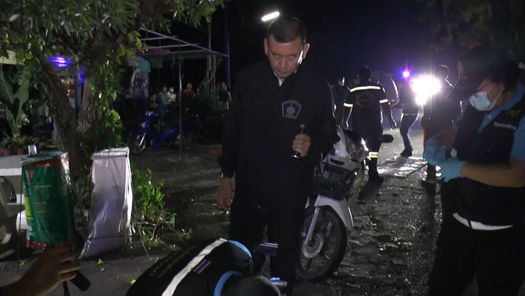 จากการสอบถาม นางสังวาลย์ อายุ 55 ปี แม่นายอัษฎา ซึ่งยังอยู่ในอาการตื่นตระหนก เล่าว่า เมื่อช่วงเช้า ลูกชายและสะใภ้ ไปทำบุญเนื่องในวันสงกรานต์ที่วัดด้วยกันมา พอตกดึก ก็มานั่งทำอาหารและดื่มฉลองกันตามปกติ จนช่วงก่อนเกิดเหตุตนเองได้เดินมาร้านค้าเพื่อซื้อของ มาเจอลูกชายที่ขี่รถจักรยานยนต์ตามลูกสะใภ้ที่ซ้อนมากับเพื่อน ลูกชายดูท่าทางโกรธเกรี้ยวและด่าว่ารุนแรงเสียงดังลั่น ตนเองเห็นดังนั้นจึงเข้าห้าม แต่ลูกกลับบอก “อย่ามายุ่ง” และเข้าไปทำร้ายลูกสะใภ้ ก่อนควักอาวุธปืนที่ติดตัวมากระหน่ำยิงสะใภ้ 4 นัด และพูดขอโทษแม่ หันปากกระบอกปืนจ่อลั้นไกดับต่อหน้าแม่