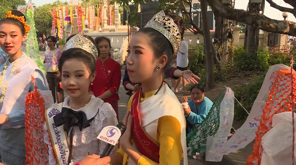 นอกจากความสนุกสนานของการเล่นน้ำสงกรานต์แล้ว ที่เชียงใหม่วันนี้ยังมีงานย้อนยุคม่วนใจ๋ แอ่วปี๋ใหม่เมืองขึ้น บริเวณเชิงสะพานนวรัฐและพุทธสถานเชียงใหม่ ซึ่งมีขบวนแห่สงกรานต์แแบบย้อนยุค ผู้คนทั้งเด็กๆ วัยรุ่นและคนเฒ่าคนแก่ ก็จะแต่งกายแบบบ้านนาในอดีตอย่างสวยสดงดงาม อยู่ท่ามกลางบรรยากาศของการทำบุญสรงน้ำพระก่อเจดีย์ทรายและปักตุงช่อตุงไชย หมือนพาเราย้อนอดีตไปประเพณีปี๋ใหม่เมืองล้านนาเมื่อ 30-40 ปีก่อน ซึ่งเด็กรุ่นใหม่บางส่วนเค้าบอกว่า ชื่นชอบและภูมิใจที่ได้ใส่ชุดพื้นเมือง