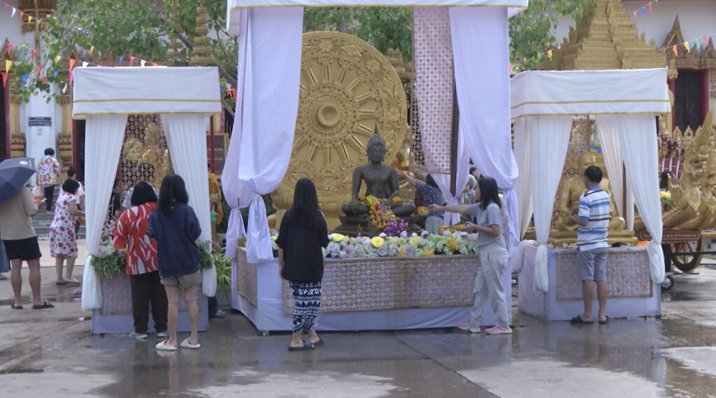เราได้พูดคุยกับประชาชนที่เดินทางมาทำบุญในวันนี้ให้ข้อให้ข้อมูลว่า มาทำบุญเป็นประจำเพื่อความสบายใจ และเป็นสิริมงคลกับตนเองและครอบครัว ร่วมไปถึงนำหลักธรรมคำสอนดีๆ มาปฏิบัติใช้