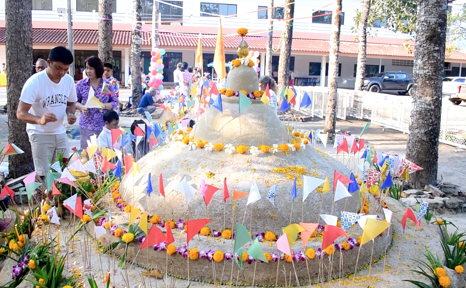 ส่วนที่ศาลาการเปรียญวัดคลองเพชร จังหวัดตราด ประชาชน รวมถึงแรงงานต่างถิ่น ร่วมทำบุญขนทรายเข้าวัดก่อเจดีย์ทรายในวันสงกรานต์ เพื่อสืบสานประเพณีอันดีงาม โดยประเพณีขนทรายเข้าวัดและก่อเจดีย์ทราย เป็นอีกหนึ่งประเพณีที่นิยมทำกันในช่วงสงกรานต์ ตามความเชื่อโบราณคือ เมื่อเราเดินเข้าวัด เท้าก็ติดดินติดทรายออกไปด้วย .-สำนักข่าวไทย