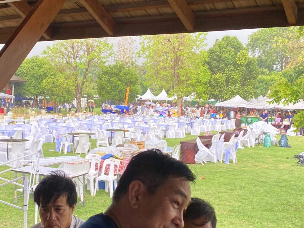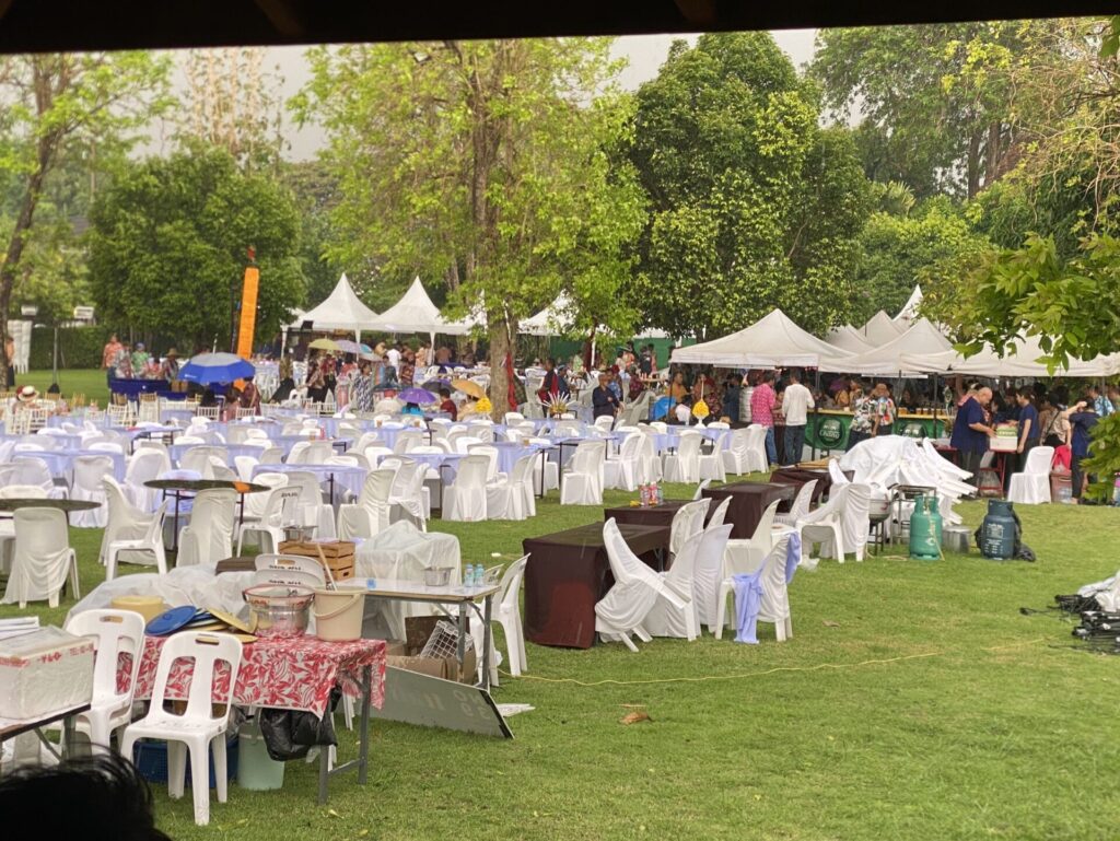 โดยศก่อนเริ่มงานเวลา 15.20 น. เกิดพายุฝนและลมกระโชกแรง ทำให้เต็นท์ซุ้มอาหารที่จัดภายในงานเลี้ยงกว่า 50 ซุ้ม บางส่วนกระเด็นล้มลงที่สนามหญ้าของบ้านพัก และมวลชนรวมถึงเหล่า สส.ที่เดินทางมาถึง ต้องเข้าไปหลบฝนในอาคาร เนื่องจากการจัดงานในวันนี้เป็นลักษณะโต๊ะจีนจัดในที่โล่งแจ้ง .-719 – สำนักข่าวไทย