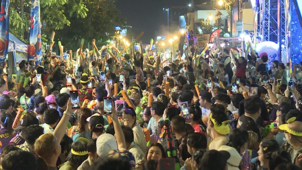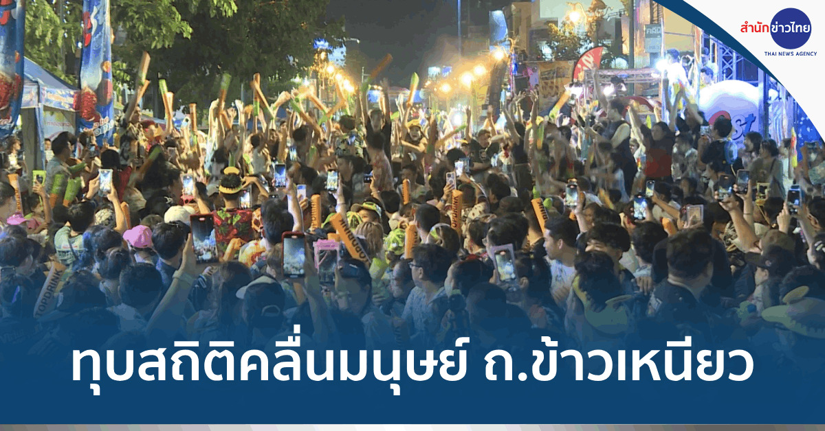 ขอนแก่น 15 เม.ย. – สุดมัน ถ.ข้าวเหนียว ขอนแก่น นักท่องเที่ยวร่วมเล่นคลื่นมนุษย์ไร้แอลกอฮอล์ วันสุดท้ายกว่า 160,000 คน ทุบสถิติการเล่นคลื่นมนุษย์สุดมิตรภาพที่จัดขึ้นครั้งแรกเมื่อปี 2562 ที่มีนักท่องเที่ยวร่วมเล่นคลื่นมนุษย์วันสุดท้าย 120,000 คน