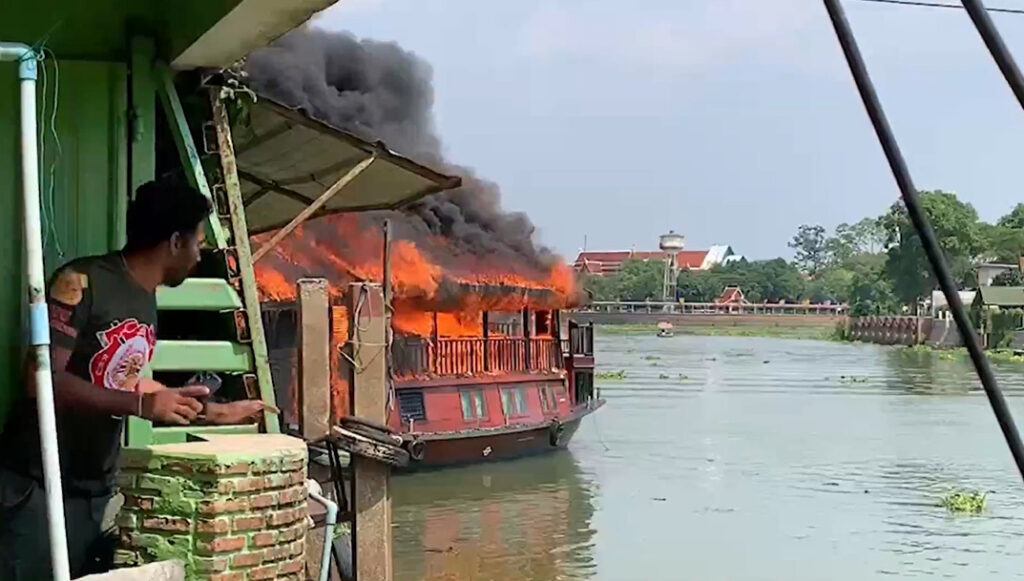 พระนครศรีอยุธยา 16 เม.ย. – ระทึก! เพลิงไหม้ไฟลุกท่วม เรือนำนักท่องเที่ยวล่องเรือรับประทานอาหาร ช่วยนักท่องเที่ยวปลอดภัย ล่าสุดกรมเจ้าท่า สั่งสอบสวนสาเหตุแล้ว