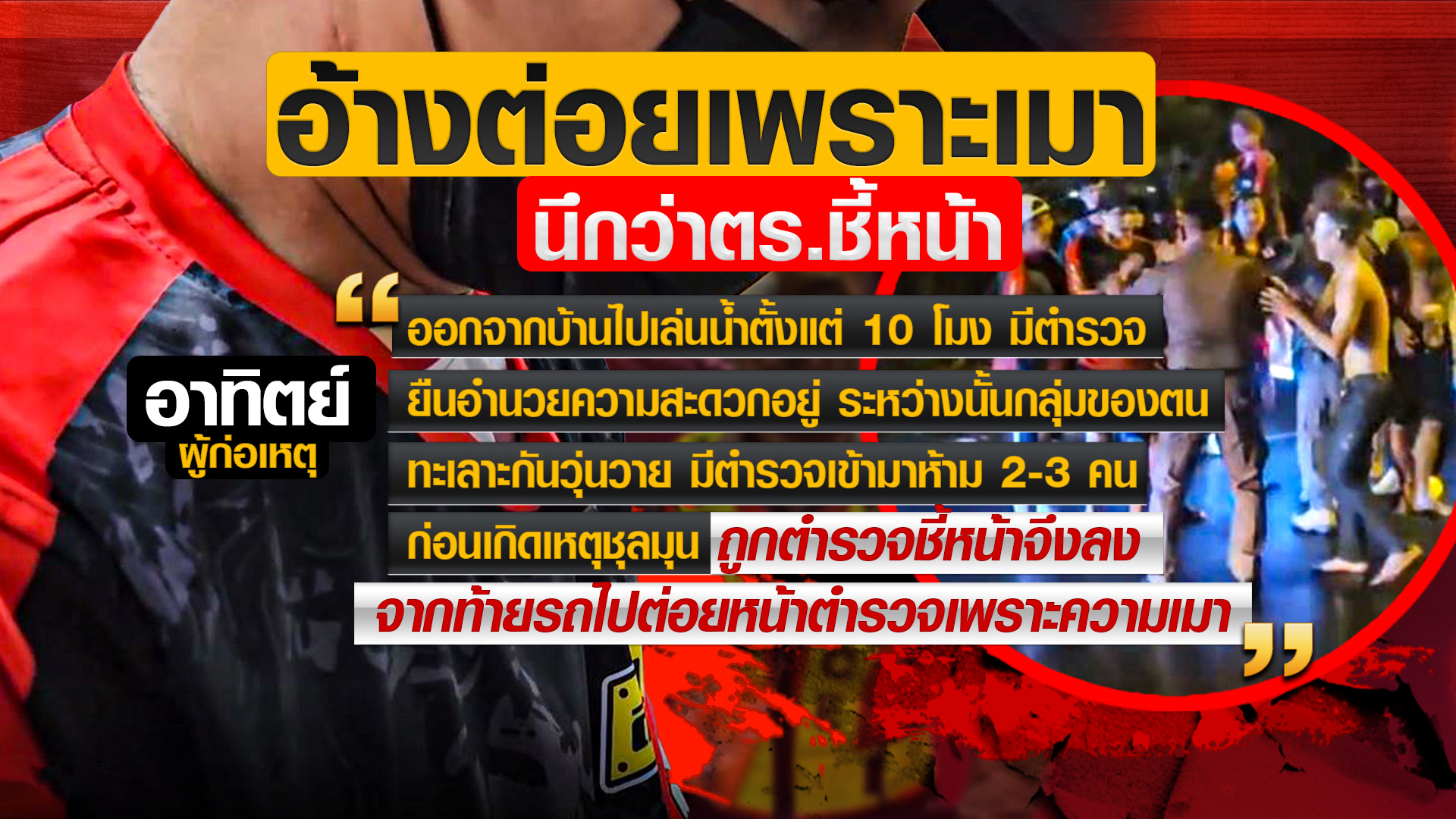 ขณะที่ นายฉลองชัย อายุ 27 ปี หนึ่งในผู้เข้าห้าม บอกว่า ตนเองมาทีหลัง แต่เห็นกลุ่มเพื่อนกำลังมีเรื่องกับตำรวจ จึงรีบเข้าห้ามและกันให้ตำรวจถอยออกไปโดยไม่มีเจตนาที่จะทำร้าย หลังเกิดเหตุแล้วก็คุยกันในกลุ่มจะพากันเข้ามอบตัว แต่ตำรวจเข้ามาติดตามตัวก่อน อยากจะขอโทษตำรวจทุกนาย แทนน้อง ๆ ที่ก่อเรื่อง ส่วนตัวคิดว่าทำผิด ก็ต้องยอมรับผิด .-สำนักข่าวไทย
