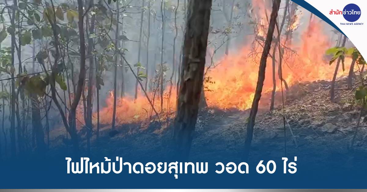 เจ้าหน้าที่หลายฝ่าย รวมทั้งพระภิกษุและสามเณร ระดมกำลังเดินเท้าขึ้นไปดับไฟป่าที่ลุกไหม้ด้านหลังวัดป่าสวนพุทธธรรม ในเขตอุทยานแห่งชาติดอยสุเทพ เมื่อคืนที่ผ่านมา ใช้เวลานานเกือบ 2 ชั่วโมง เพลิงจึงสงบลง พื้นที่ป่าเสียหายถึง 60 ไร่ หัวหน้าอุทยานแห่งชาติดอยสุเทพคาดว่า สาเหตุน่าจะเกิดจากการลักลอบจุดไฟเพื่อล่าสัตว์