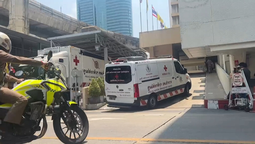 เวลา 09.50 น. รถ MOBILE ICU ศูนย์ส่งกลับ รพ.ตำรวจ เดินทางมารับตัว ด.ต.ปิยนันท์ หรือดาบต้าร์ อายุ 39 ปี ที่ประสบเหตุถูกรถเก๋งพุ่งชนจนได้รับบาดเจ็บสาหัสขณะปฏิบัติหน้าที่ให้การจราจรเส้นทางในพื้นที่ อ.พัฒนานิคม จ.ลพบุรี เมื่อเย็นวันที่ 16 เมษายน ที่ผ่านมา โดยดาบตาร์ ได้รักษาตัวอยู่ที่ รพ.พระนารายณ์มหาราช และถูกส่งตัวไปรักษาต่อที่โรงพยาบาลตำรวจ ในสภาพหมดสติ หลังเพิ่งได้รับการผ่าตัดสมอง เจาะผนังปอด ไปเมื่อวันก่อน โดยอุปกรณ์ในการช่วยชีวิตครบครัน