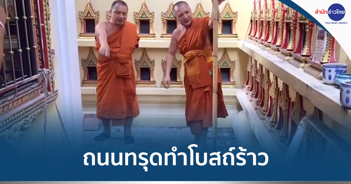 นนทบุรี 21 เม.ย.- เหตุถนนทรุดตัวหน้าวัดบ่อ ทำโบสถ์มูลค่า 100 ล้านบาท ร้าว พื้นแตกหลุมลึกกว่า 3 เมตร หวั่นโบสถ์ถล่ม เจ้าอาวาสวอนหน่วยงานที่เกี่ยวข้องเข้าช่วยเหลือด่วน