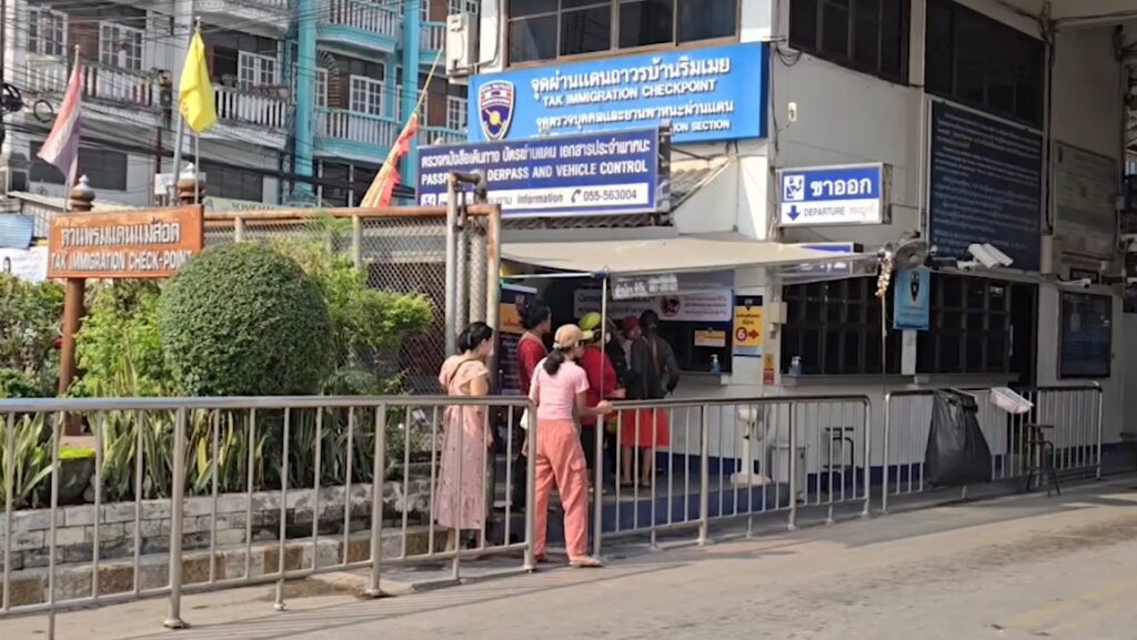 ขณะที่ด่านพรมแดนถาวรแม่สอด-เมียวดี แห่งที่ 1 บ้านริมเมย ต.ท่าสายลวด อ.แม่สอด จ.ตาก เช้าวันนี้ (22 เม.ย.) ด่านพรมแดนสองประเทศยังคงเปิดปกติ แต่เกิดปัญหาที่ด่านเมียวดี ระบบออกหนังสือผ่านแดนชั่วคราวประจำด่านถาวรเมียวดีแห่งที่ 1 ระบบขัดข้องมานาน 2 วันแล้ว ส่งผลให้ด่านถาวรเมียวดีแห่งที่ 1 เจ้าหน้าที่ไม่สามารถออกหนังสือผ่านแดนข้ามประเทศ ชาวเมียนมาไม่สามารถข้ามด่านพรมแดนทั้งสองประเทศได้ ทำให้บรรยากาศด่านพรมแดนถาวรแม่สอด-เมียวดี แห่งที่ 1 เงียบเหงา ท่ามกลางการวางกำลังรอบพื้นที่ด่านพรมแดนถาวรแม่สอดทั้งสองแห่ง
