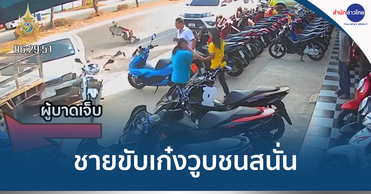 วงจรปิดบันทึกภาพวินาทีพนักงานและลูกค้ารวม 4 คน กำลังส่งรถให้ลูกค้าและกำลังเช็กรถจักรยานยนต์กันอยู่ จู่ๆ มีรถเก๋งเสียหลักพุ่งเข้ามาอย่างแรง เฉียดพนักงานร้านที่สวมเสื้อสีฟ้าไปนิดเดียว แต่พนักงานชายอีกคนที่กำลังเช็กรถอยู่กระโดดหนี แต่ไม่ทัน ทำให้รถจักรยานยนต์ที่ถูกชนมากระแทกพนักงานชายคนดังกล่าวได้รับบาดเจ็บ เหตุการณ์นี้เกิดขึ้นที่หน้าร้านขายจักรยานยนต์แห่งหนึ่ง ริมถนนบายพาสขาเข้ากรุงเทพฯ ต.ลาดใหญ่ อ.เมือง จ.สมุทรสงคราม เมื่อช่วงเย็นวานนี้ (22 เม.ย.)