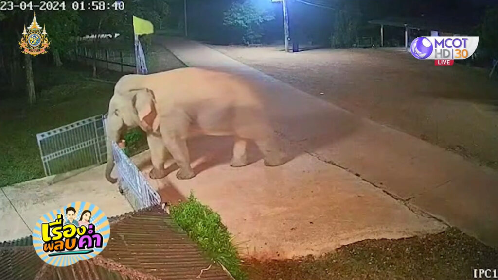 วงจรปิดเห็นกันชัดๆ เหตุเกิดเมื่อประมาณ 02.00 น. ช้างป่าขนาดใหญ่บุกเข้าโรงเรียน โดยเดินเข้าทางหน้าโรงเรียน ดันเปิดประตูรั้วแบบสบาย เข้าไปเขย่ามะม่วงกินจนเกือบหมดต้นเหลือไว้ให้ดู 4 ลูก เจ้าช้างป่า ใจเย็นเดินสำรวจรอบต้นมะม่วงใช้งวงรัดเขย่า พร้อมเดินหนีมด ที่รังร่วงลงมา กินจนอิ่ม ก่อนเดินกลับออกไป บ้านฝั่งตรงข้ามโรงเรียน