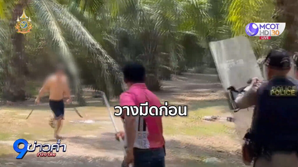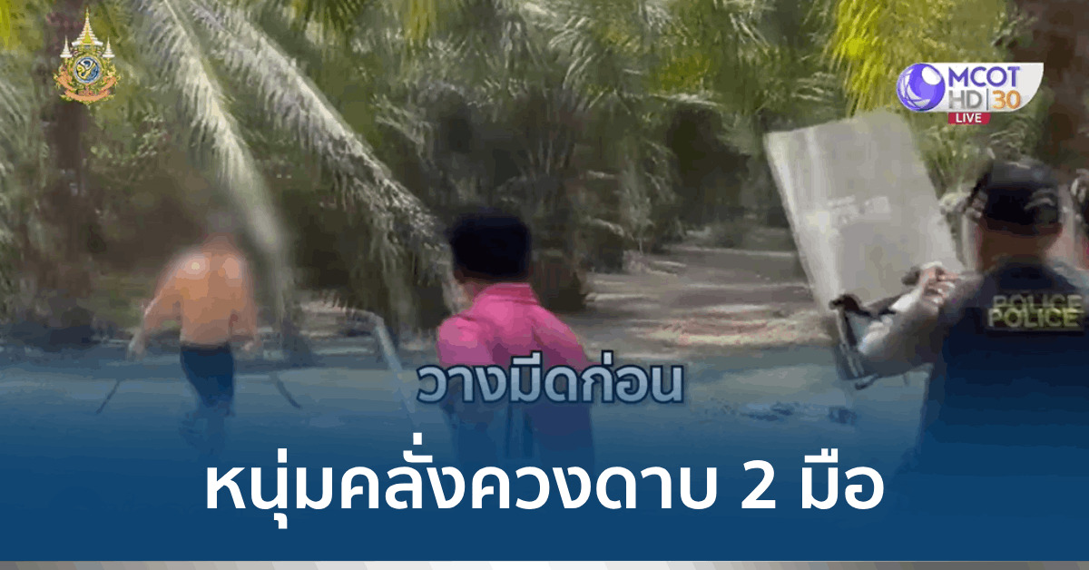 สุราษฎร์ธานี 24 เม.ย. – อากาศร้อนจัด หนุ่มคลั่ง ถือดาบคู่อาละวาด ฟันไม่ยั้ง ตำรวจที่เข้าไประงับเหตุ วิ่งหลบกันวุ่น ก่อนจะสยบความคลั่งลงได้