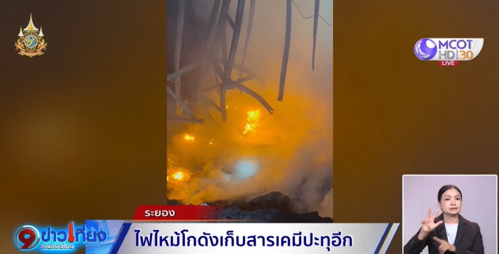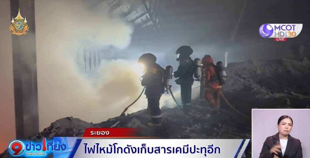 ระยอง 25 เม.ย. – ไฟไหม้โรงงานเก็บสารเคมี อ.บ้านค่าย จ.ระยอง ปะทุขึ้นมาอีกกลางดึก เจ้าหน้าที่เร่งดับเพลิง พร้อมร้องขอผู้เชี่ยวชาญเข้ามาช่วยดับไฟ ด้าน ก.อุตสาหกรรม ส่งผู้แทนเข้าแจ้งความเอาผิด เนื่องจากบริษัทดังกล่าวถูกสั่งปิดแล้วแต่ยังเก็บสารเคมีอันตรายไว้ในบริเวณโรงงาน