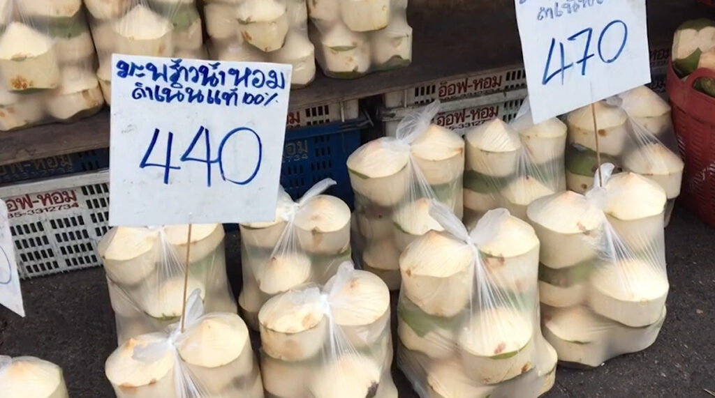 เชียงใหม่ 27 เม.ย.-มะพร้าวน้ำหอมที่เชียงใหม่ ราคาแพงขึ้นเป็นเท่าตัว อยู่ที่ลูกละ 80-100 บาท เหตุแห้งแล้ง ผลผลิตออกน้อย แต่ยังคงเป็นที่นิยมของชาวต่างชาติ