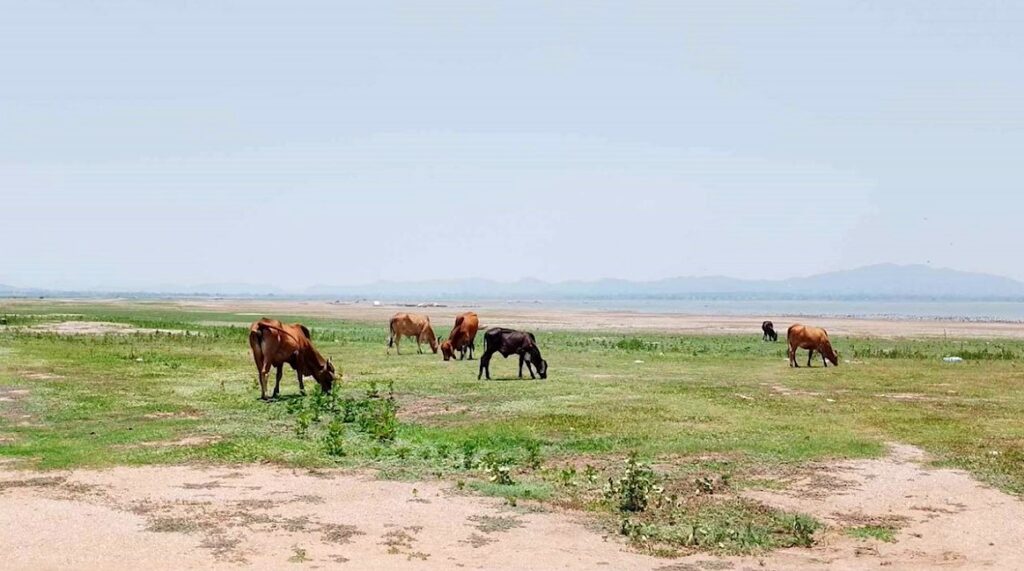 โคราช 28 เม.ย. – แล้งหนัก อ่างเก็บน้ำลำตะคอง จ.นครราชสีมา จ่ายน้ำให้ 5 อำเภอ ปริมาณน้ำลดลง จนชาวบ้านจูงวัว-ควายมากินหญ้าหน้าริมอ่างได้