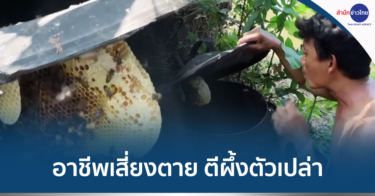 กำแพงเพชร 29 เม.ย.- “นักตีผึ้งโพรง” อาชีพเสี่ยงตายที่อาศัยภูมิปัญญาชาวบ้าน ใช้ก้านมะละกอและยาเส้นมวนเดียว นำรังผึ้งและน้ำหวานไปขายสร้างรายได้ช่วงเสร็จจากงาน