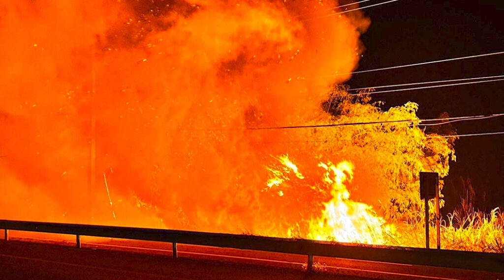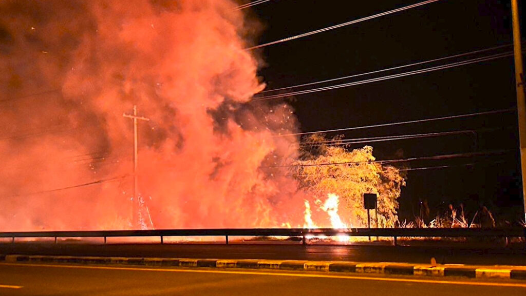 ด้านชาวบ้าน เล่าว่าเห็นไฟไหม้ป่าหญ้าหลังหมู่บ้าน ก่อนลามไปไหม้ป่าหญ้าเป็นบริเวณกว้างอย่างรวดเร็วในช่วงทุ่มครึ่ง จากนั้นไฟได้ลุกลามเข้าใกล้แนวถนนทางหลวง และเปลวไฟได้ลุกโชนสูง จนลามไปถึงแนวสายส่งไฟฟ้า