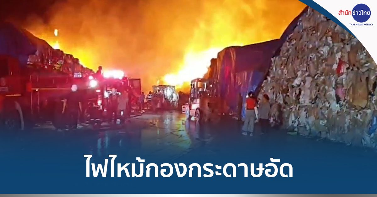 สมุทรสาคร 1 พ.ค.- เจ้าหน้าที่เตรียมเข้าตรวจสอบเหตุไฟไหม้กองกระดาษอัด โรงงานรีไซเคิล จ.สมุทรสาคร เบื้องต้นคาดอากาศร้อน และไม่มีผู้บาดเจ็บหรือเสียชีวิต