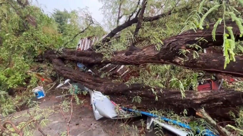 อุบลราชธานี 6 พ.ค.-อุบลราชธานี พายุฤดูร้อนพัดต้นมะขามยักษ์อายุเกือบร้อยปีทับบ้าน โชคดี 3 ชีวิตรอดหวุดหวิด