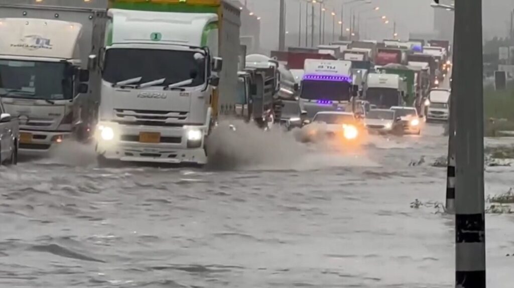 ชลบุรี 7 พ.ค. – ฝนตกหนัก น้ำท่วมขังถนนบายพาสเลี่ยงเมืองชลบุรี ขาเข้ากรุงเทพฯ ช่วง ต.บ้านสวน อ.เมือง บางจุดรถผ่านไม่ได้ การจราจรติดขัด