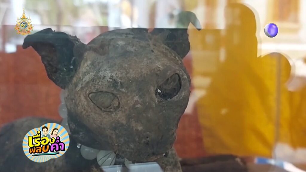 ต่อมา อีก 7 วัน ญาติโยมมาบอกอีกว่า ร่างของสัตว์ที่พบ ไม่เน่าเปื่อย พอไปดูก็พบว่าซากสัตว์มีลักษณะคล้ายแมวนอนหมอบอยู่บนกอหญ้า และรอบๆ กอหญ้ามีมดแมลงไต่อยู่เต็มไปหมด แต่บนซากสัตว์กลับไม่มีมดหรือแมลงไต่แต่อย่างใด เจ้าอาวาสจึงนำซากสัตว์ดังกล่าวกลับมาที่วัด และใช้แปรงทำความสะอาด ส่วนการสำรวจโครงร่างของซากสัตว์ที่คล้ายแมว แต่ตัวใหญ่กว่าแมวทั่วๆ ไป ทำให้คาดว่า น่าจะเป็นเสือปลา ที่ปกติมักชอบมาซุ่มรอกินปลาริมคลอง แต่ก็ไม่รู้ว่าตายเพราะอะไร รวมถึงไม่รู้ว่าทำไมจึงไม่เน่าเปื่อยเหมือนสิ่งที่มีชีวิตทั่วๆ ไป