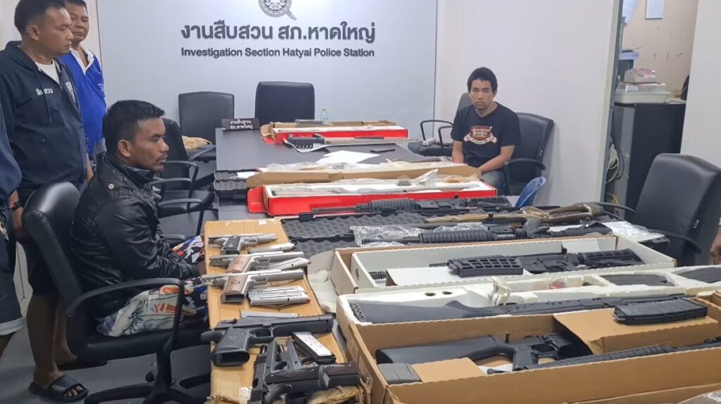 สงขลา 12 พ.ค.-ตำรวจสงขลารวบ 2 โจรขึ้นบ้านหรู 3 หลังรวดในคืนเดียว พบเพิ่งร่วมแก๊งยกเค้าร้านปืน อ.หาดใหญ่ เมื่อไม่กี่วันก่อน สารภาพก่อเหตุซ้ำอีก เพราะต้องการหาเงินไปจ่ายดอกเบี้ยเงินค่าประกันตัวที่ยืมเพื่อนร่วมแก๊งมา