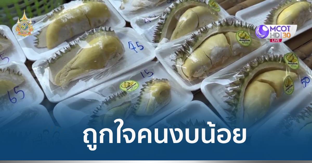 นายธณัฐพล คล้ายบันดิษฐ์ เจ้าของร้าน บอกว่า ทุเรียนที่เอามาขายเป็นทุเรียนหมอนทองจันทบุรี ส่วนสาเหตุที่ขายราคาถูก เพราะอยากให้ทุกคนได้กินทุเรียนของดี โดยเฉพาะคนที่มีทุนน้อย ซึ่งทางร้านได้แกะเนื้อแพ็กไว้ เริ่มต้นราคา 1 บาท หากใครจะซื้อเป็นกิโลก็มี แม้จะได้กำไรน้อย ก็ยอม เพราะทำแล้วมีความสุข. – สำนักข่าวไทย