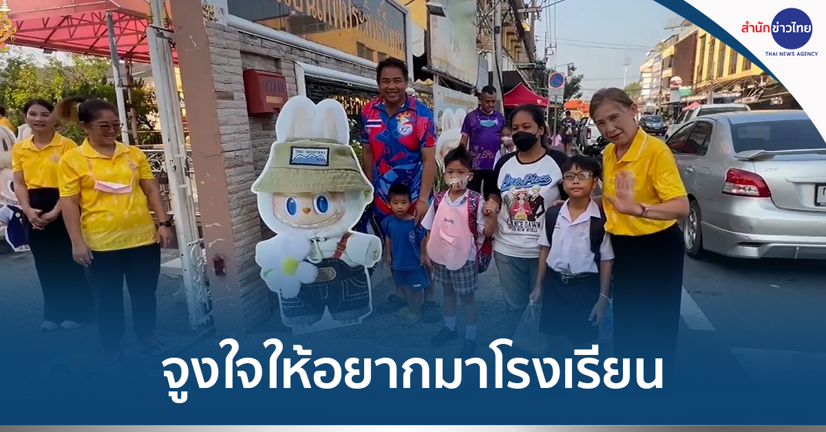 ฉะเชิงเทรา 15 พ.ค.- ไอเดียเก๋! ตั้งป้ายสแตนดี้ “ลาบูบู้” หน้าโรงเรียน จูงใจเด็กๆ ให้อยากมาโรงเรียน พบได้ผลดีเกินคาด ทำให้เปิดเทอมปีนี้ มีแต่ความสดใส ไม่มีเสียงร้องไห้