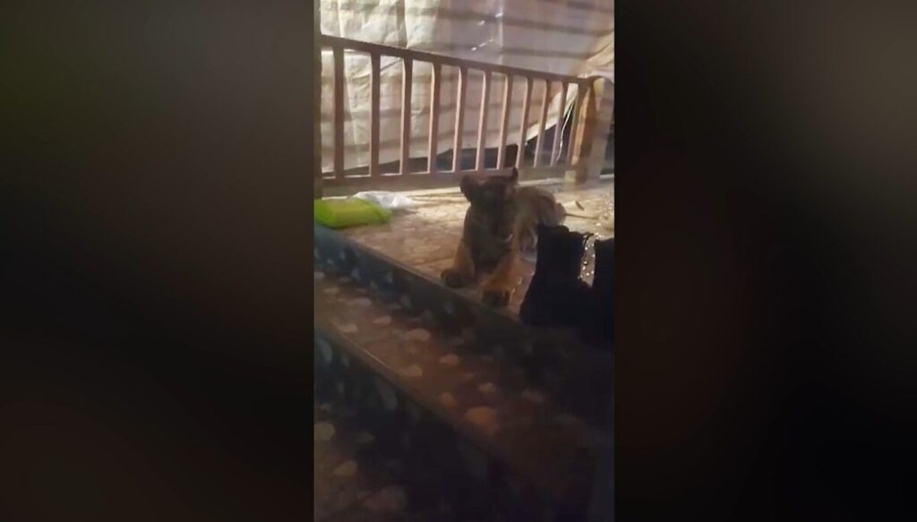 ฉะเชิงเทรา 16 พ.ค.-ลูกเสือโคร่ง จากไหนไม่รู้ เข้ามานอนเล่นอยู่ในบ้านกลางดึก เจ้าของบ้านต้องเรียกตำรวจ กู้ภัย เข้ามาช่วย