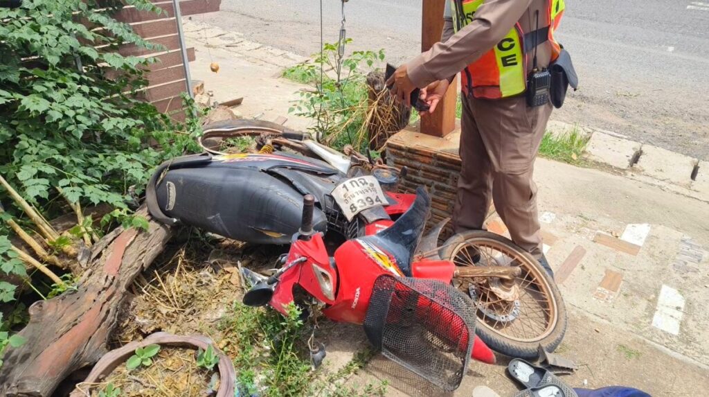 ยโสธร 17 พ.ค.-กระบะมาด้วยความเร็ว เสียหลักพุ่งชนจักรยานต์ยาย-หลาน ดับ 1 เจ็บ1 ก่อนชนกำแพงร้านก๋วยเตี๋ยวพังยับ คนขับอ้างโรคประจำตัวที่เป็นลมชักเกิดกำเริบ