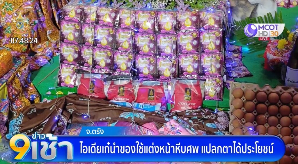 ตรัง 20 พ.ค. – ไอเดียเก๋ นำของใช้ ข้าวสาร อาหารแห้ง ผ้าถุง ผ้าไทย แต่งหน้าหีบศพแทนดอกไม้สด แปลกตาและสวยงาม แถมได้ประโยชน์