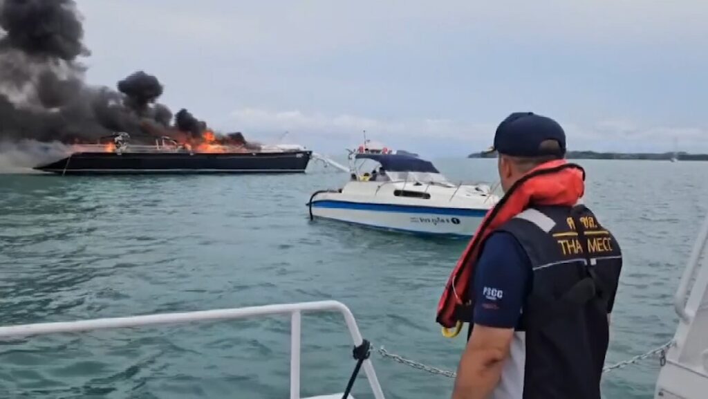 ภูเก็ต 21 ภ.ค. – เจ้าท่าภูมิภาค สาขาภูเก็ต ประสานตำรวจตรวจสอบสาเหตุเพลิงไหม้เรือยอชต์เสียหายทั้งลำ ขณะผูกทุ่นลอยลำอยู่หน้าเกาะโหลน อ่าวฉลอง จ.ภูเก็ต คาดเสียหายกว่า 100 ล้านบาท