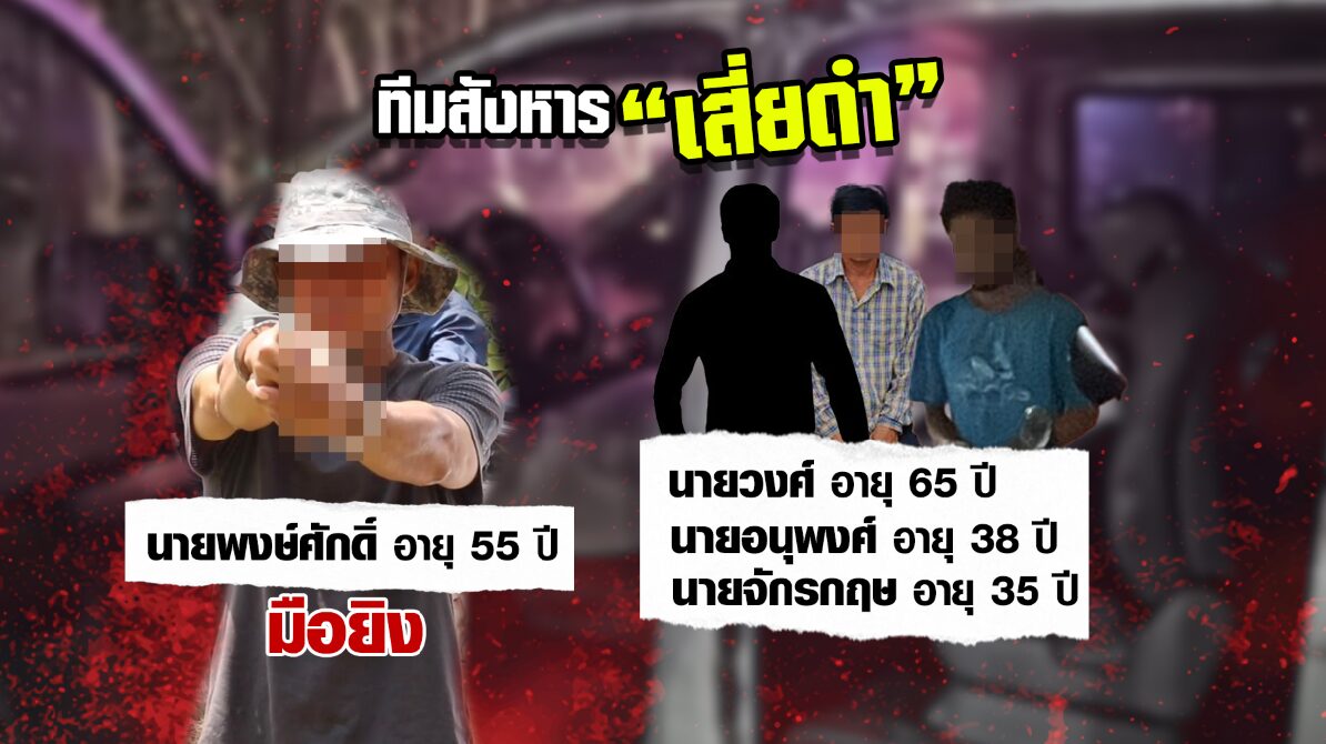 บุรีรัมย์ 21 พ.ค. – รวบยกแก๊ง 4 คนร้าย ทีมสังหาร “เสี่ยดำ” เจ้าของค่ายมวย ดับคารถตู้ต่อหน้าลูก มือยิง อ้างแค้นถูกขู่ฆ่าก่อน