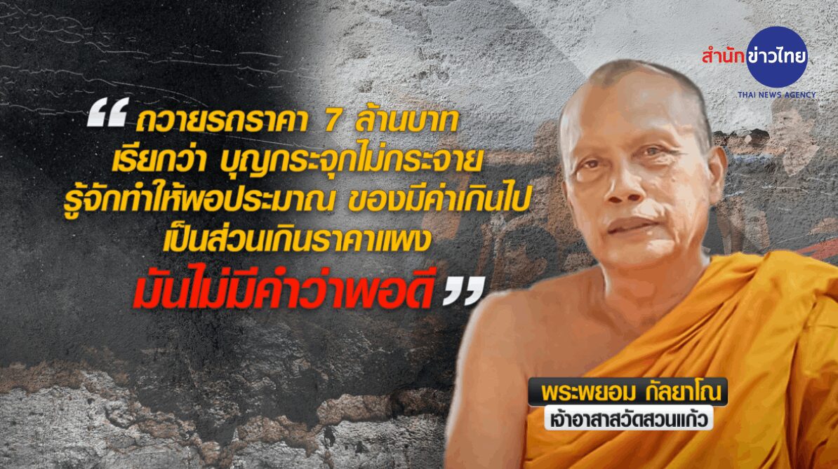 21 พ.ค. – “พระพยอม” ติงแม่ชีถวายรถหรูให้พระดัง ทำบุญกระจุก-ไม่กระจาย ต้องรู้จักทำให้พอประมาณ ของมีค่ามากเกินไปเป็นส่วนเกินราคาแพง ไม่พอดี